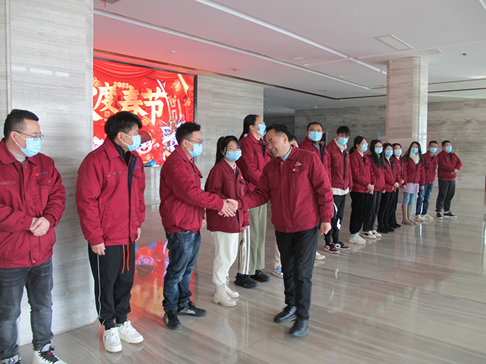“同志們!給大家拜年了!”“新春快樂!兔年大吉!”上午9時,周敏建一行與各子公司員工互道兔年新春祝福,所到之處笑聲朗朗、祝福聲聲、掌聲連連……。集團領(lǐng)導(dǎo)對各單位過去一年取得的成績給予充分肯定,對大家立足崗位、辛勤工作的付出表示感謝。