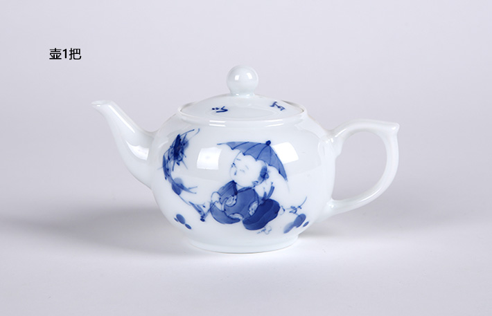 8頭手繪茶具青花童趣