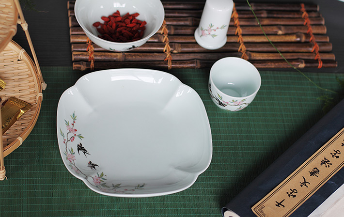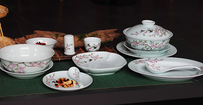 36頭青釉中餐具--燕子桃花