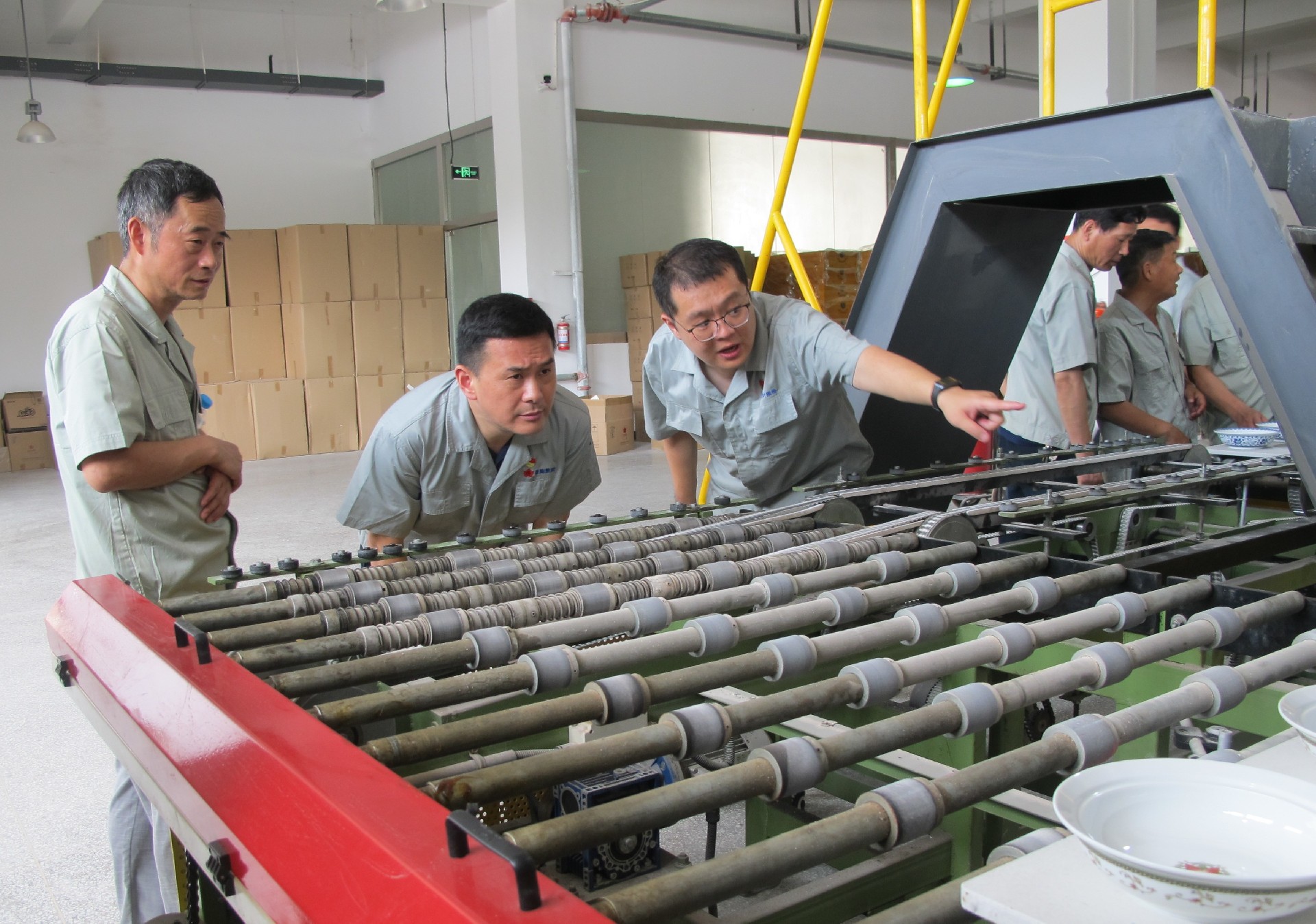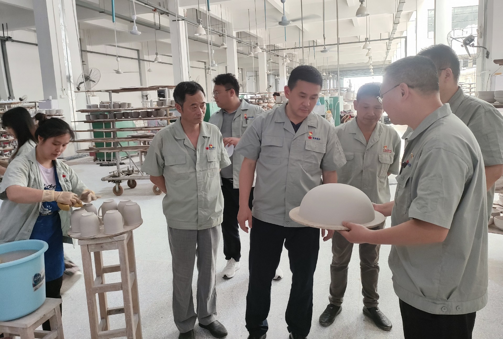 在生產(chǎn)車(chē)間調(diào)研中,鄧景揚(yáng)先后下到各個(gè)生產(chǎn)工序現(xiàn)場(chǎng),從原料、模型、成型、燒煉到彩繪車(chē)間,對(duì)每個(gè)工序都進(jìn)行了詳細(xì)了解,重點(diǎn)了解了紅葉一廠的整體生產(chǎn)能力及現(xiàn)狀。