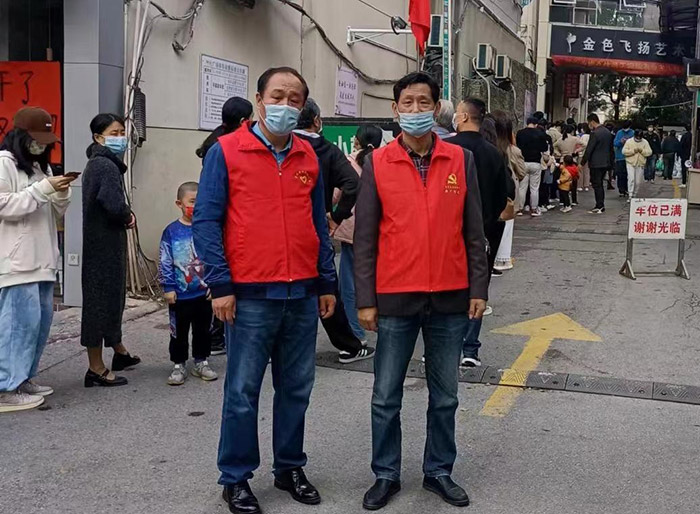 副書記陳華、黨員劉志華居住在高風險小區(qū)內(nèi),但是他們無懼風險,主動請纓,負責值守被封控的樓棟,確保疫情阻斷在網(wǎng)格內(nèi)。