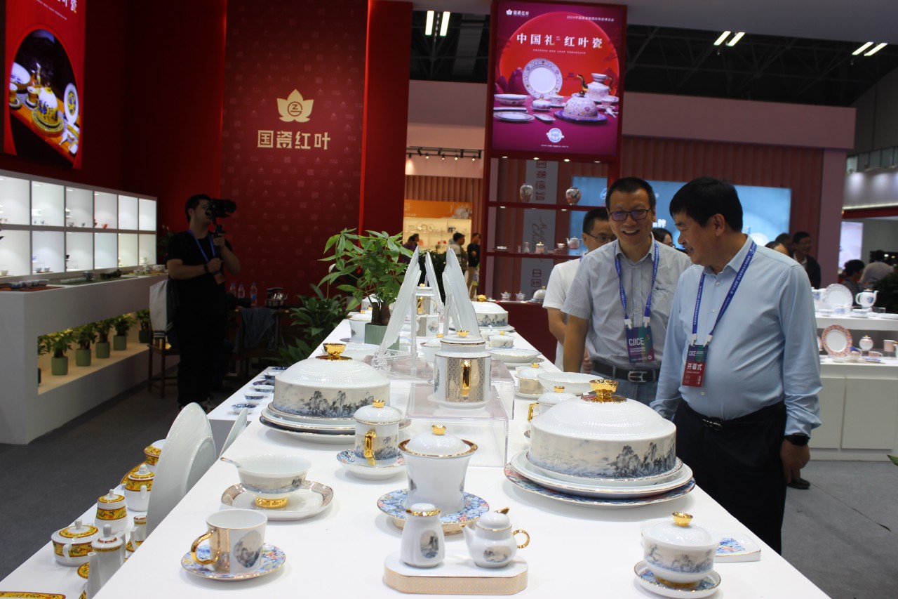 展會(huì)期間,展廳內(nèi)人流如織、氣氛熱烈非凡,多位貴賓蒞臨紅葉展廳參觀指導(dǎo)。黨委書記、董事長鄧景揚(yáng)詳細(xì)介紹了此次參展的多款新品以及國瓷紅葉的出海故事和創(chuàng)新成果。各位貴賓對此次國瓷紅葉的多款新品給予了高度評價(jià)和充分肯定并鼓勵(lì)國瓷紅葉多利用自身優(yōu)勢,積極研發(fā)新產(chǎn)品,開拓新巿場,為傳承中國傳統(tǒng)文化和創(chuàng)新發(fā)展做出更大貢獻(xiàn)。