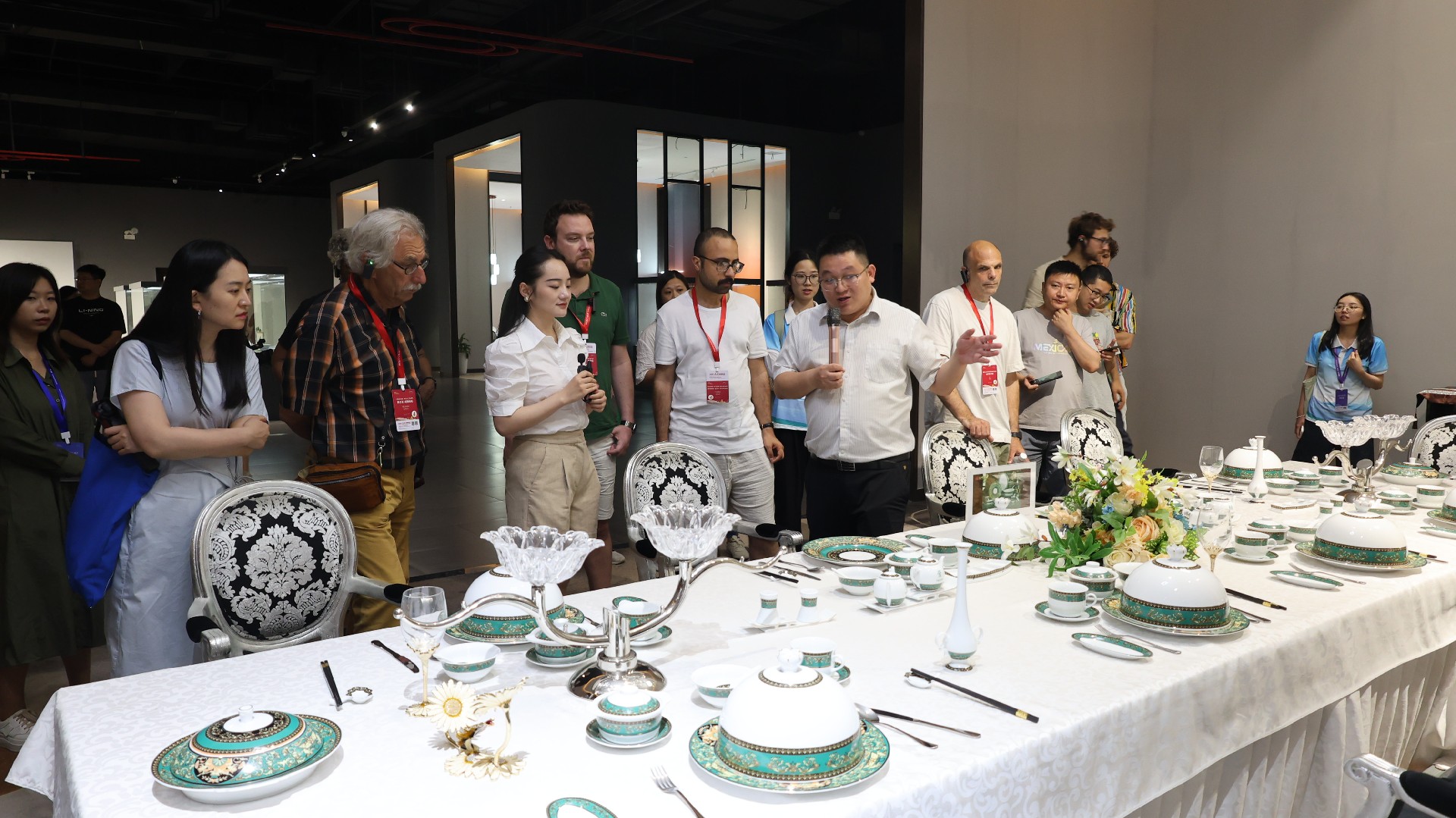 7月16日下午,參加2025年“一帶一路”記者組織論壇景德鎮(zhèn)線路主題采風(fēng)活動的成員,走進(jìn)紅葉陶瓷國瓷館進(jìn)行參觀采訪。本次采風(fēng)以“瓷鏈?zhǔn)澜纭の拿骰ヨb——‘一帶一路’視角下的景德鎮(zhèn)陶瓷傳承與創(chuàng)新”為主題,由市委宣傳部(市政府新聞辦)、市新聞工作者協(xié)會、市融媒體中心聯(lián)合主辦。來自50多個(gè)國家和地區(qū)的記者組織負(fù)責(zé)人及媒體代表約58人參與了活動。景德鎮(zhèn)陶瓷集團(tuán)黨委委員、副總經(jīng)理王小勤全程陪同講解。