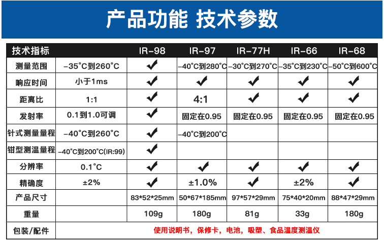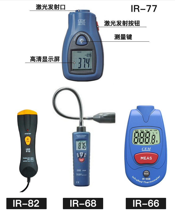 IR-66掌上式紅外測溫儀包括IR-66、IR-66B兩個(gè)型號(hào)。 CEM出品的IR-66系列掌上式紅外線測溫儀,符合人體工程學(xué)設(shè)計(jì),其體積比手掌還小,方便攜帶,是您工作上各種設(shè)備檢修、溫度情況了解,以及您日常生活起居的多功能測溫儀佳選擇。 IR-66掌上式紅外線測溫儀特性: 1.*的非接觸式測量 2.獨(dú)特新穎的外觀設(shè)計(jì) 3.自動(dòng)關(guān)機(jī)及自動(dòng)記錄數(shù)據(jù) 4.℃/℉ 轉(zhuǎn)換裝置 5.自動(dòng)量程選擇及大小值記錄 6.小巧的尺寸設(shè)計(jì)使測量方便又便于攜帶 7.大的液晶顯示屏 8.上鎖功能及低電量提示