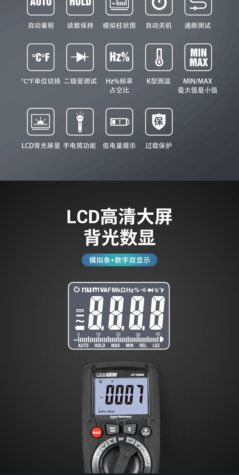 數(shù)字萬用表,一種多用途電子測量儀器,一般包含安培計、電壓表、歐姆計等功能,有時也稱為萬用計、多用計、多用電表,或三用電表。 數(shù)字萬用表適用于基本故障診斷的便攜式裝置,也有放置在工作臺的裝置,有的分辨率可以達(dá)到七、八位。 數(shù)字多用表(DMM)是在電氣測量中要用到的電子儀器。它可以有很多特殊功能,但主要功能就是對電壓、電阻和電流進(jìn)行測量,數(shù)字多用表,作為現(xiàn)代化的多用途電子測量儀器,主要用于物理、電氣、電子等測量領(lǐng)域。