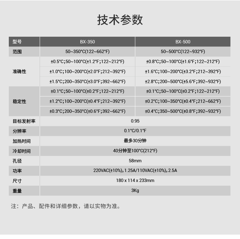BX-350校準溫度為50℃~350℃;BX-500校準溫度為50℃~500℃;