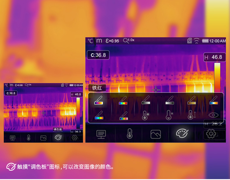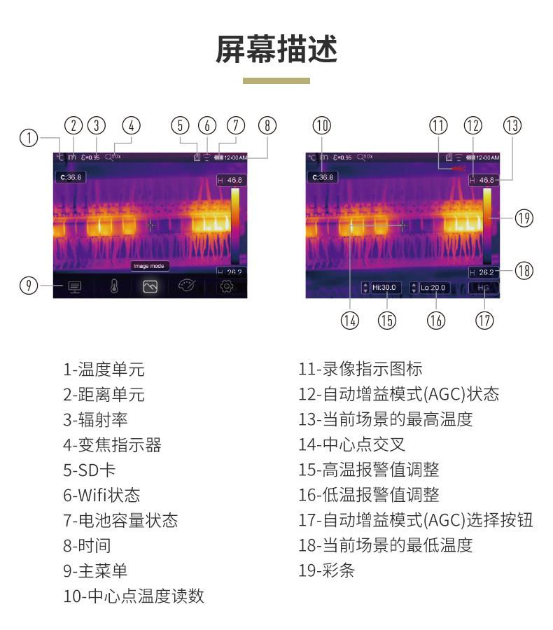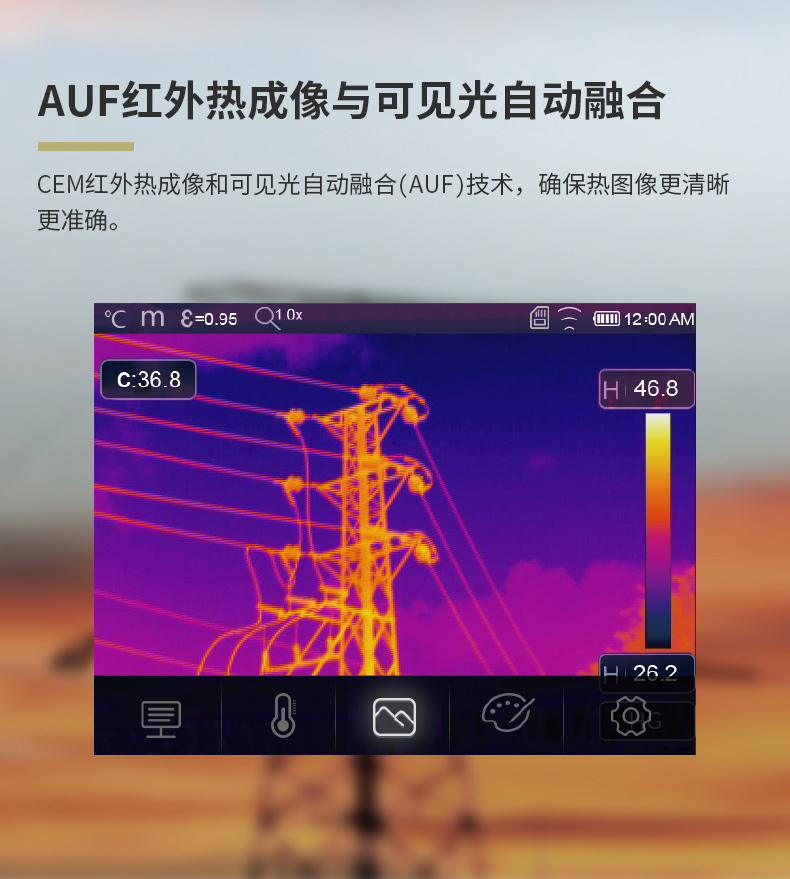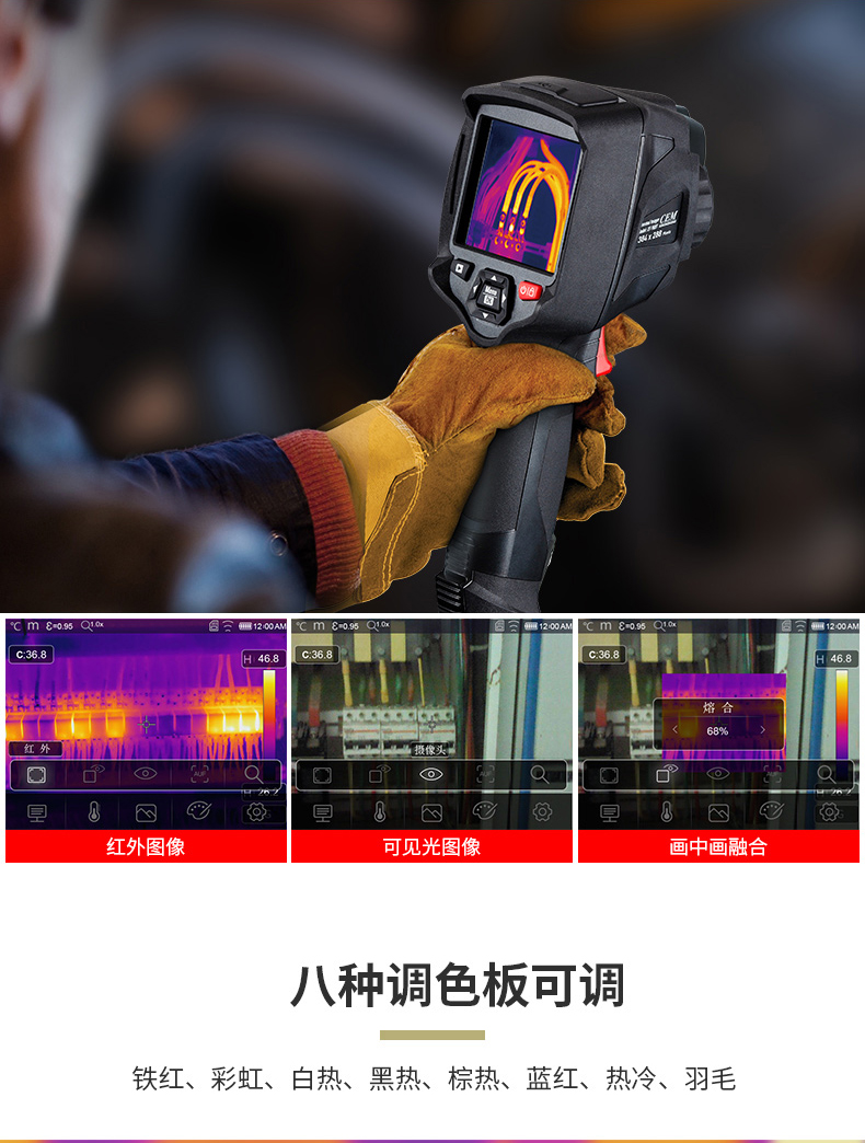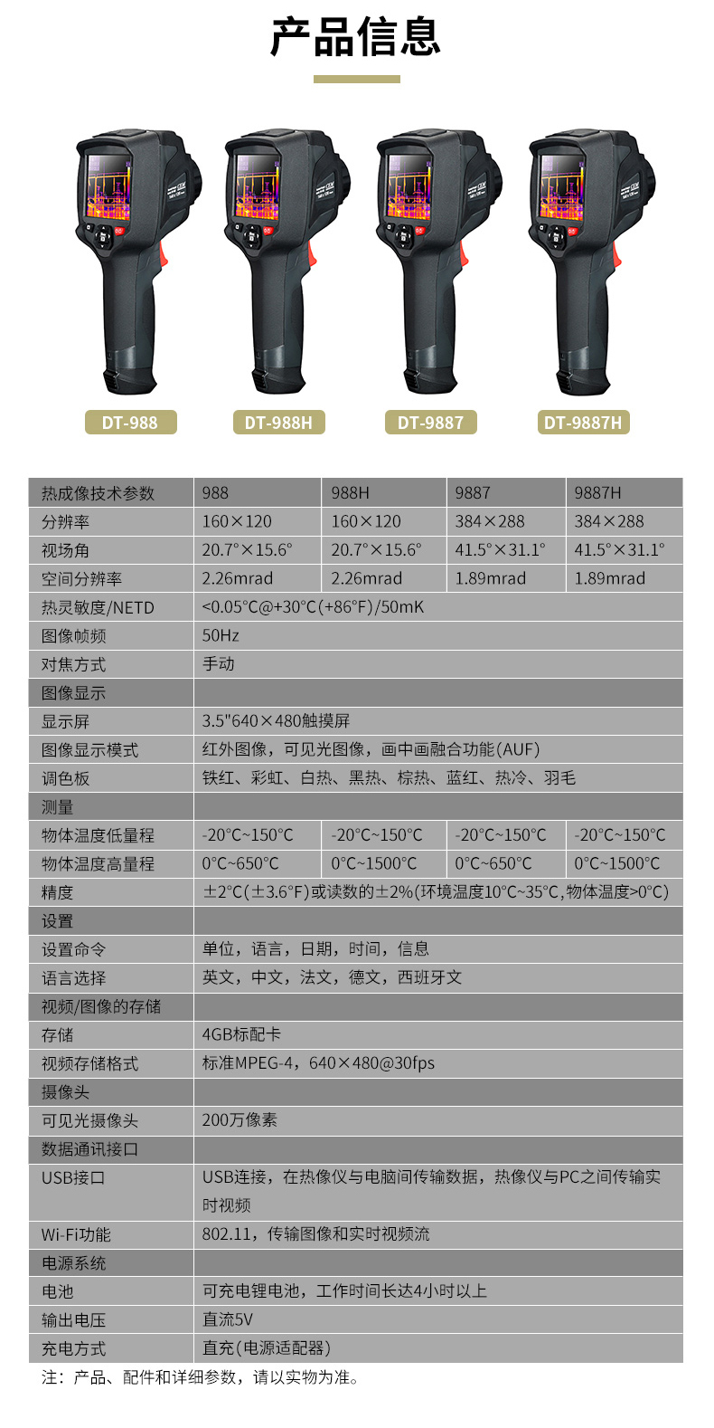 標配鏡頭22mm,分辨率324×288,IFOV:1.14mard,視場角24.5×18.6°,熱靈敏度NETD<0.06℃,圖像幀頻50Hz,溫度范圍(-20-150、0-400),可見光分辨率640×480像素