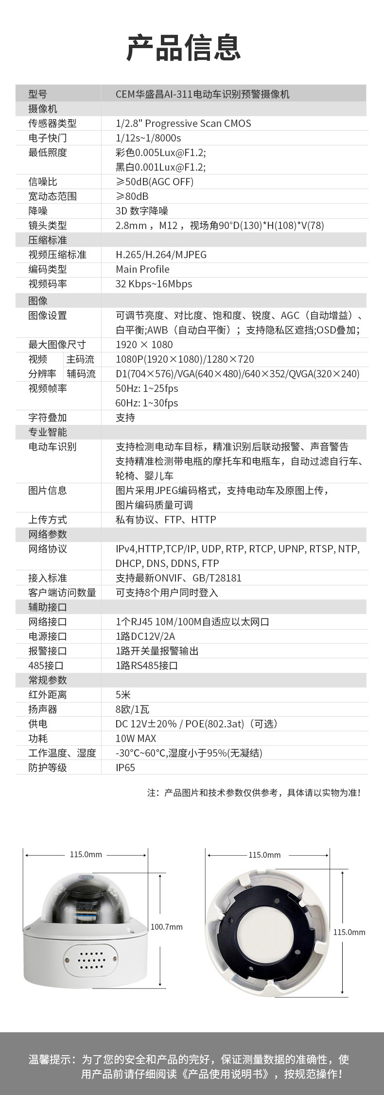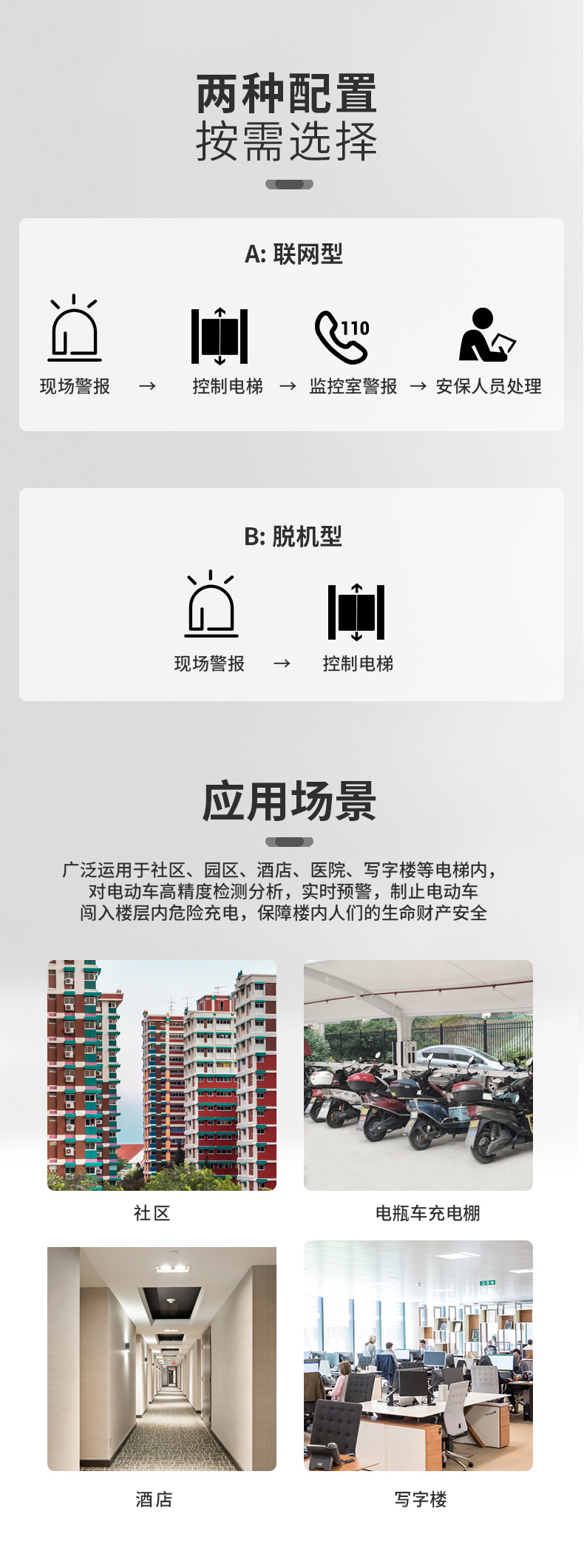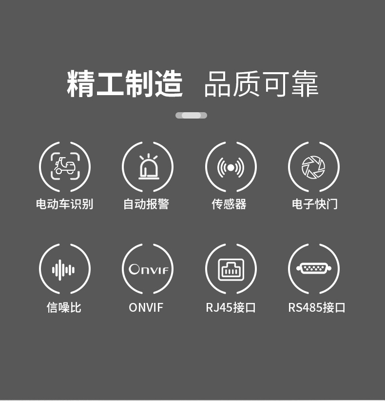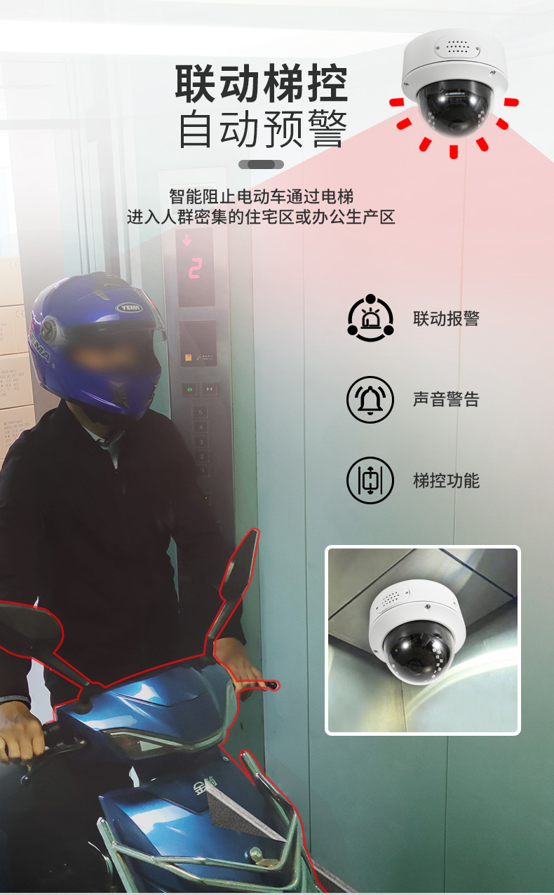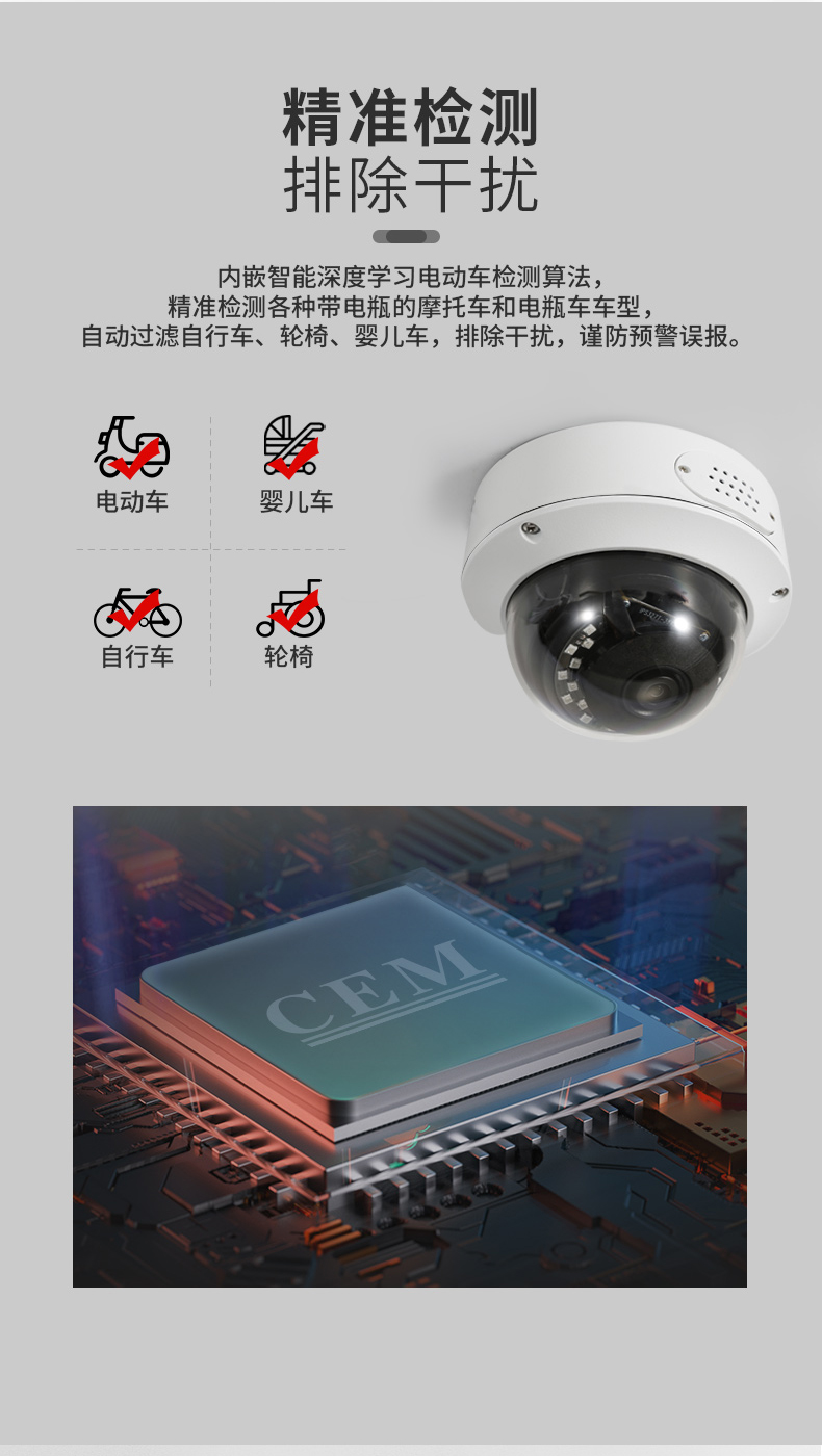 電動車識別預(yù)警攝像機(jī):電動車識別預(yù)警攝像機(jī)設(shè)備嵌入電動車識別算法,實(shí)現(xiàn)對電動車檢測分析識別,實(shí)時預(yù)警周界區(qū)域內(nèi)電動車闖入事件,前端攝像機(jī)一體化完成分析、識別、預(yù)警,并上傳平臺。
