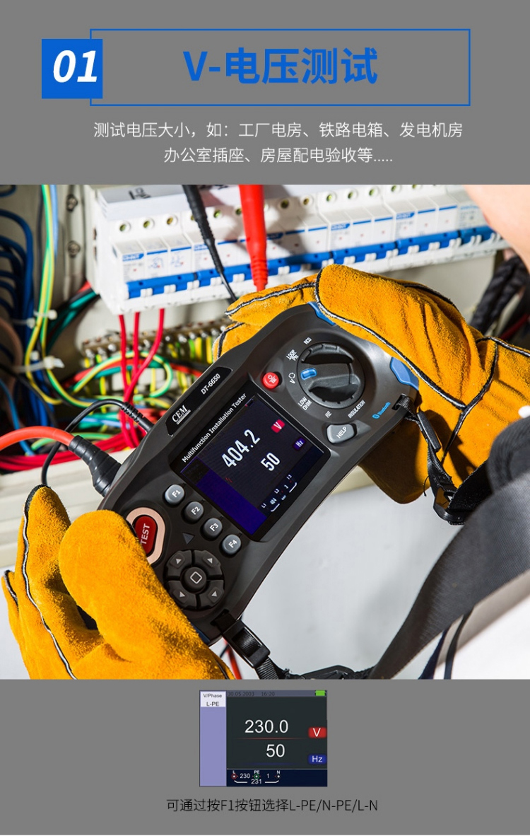 在L-N、L-PE、N-PE之間選擇測(cè)量