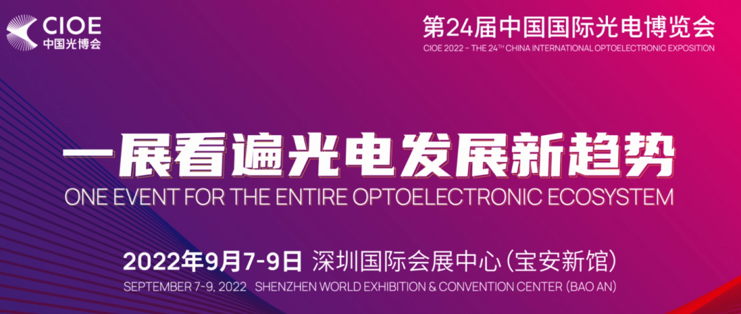 2022年9月7-9日,第24屆中國(guó)國(guó)際光電博覽會(huì)將在深圳國(guó)際會(huì)展中心舉辦。作為極具規(guī)模與影響力的光電產(chǎn)業(yè)綜合性展會(huì),本次展會(huì)展示面積達(dá)22萬(wàn)平方米,預(yù)計(jì)參展企業(yè)超3000家,專業(yè)觀眾將達(dá)10萬(wàn)人以上,展區(qū)將覆蓋信息通信、紅外技術(shù)及應(yīng)用、精密光學(xué)&攝像頭技術(shù)及應(yīng)用、激光技術(shù)及智能制造、智能傳感、光電子創(chuàng)新&新型顯示創(chuàng)新技術(shù)等六大領(lǐng)域。