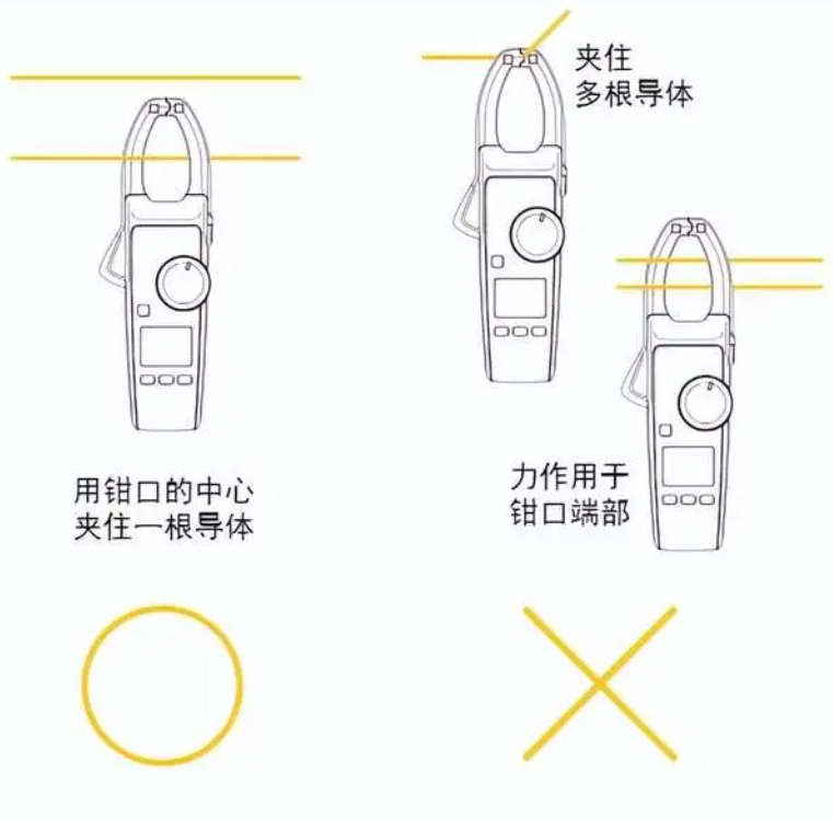 在測量時,要使被測量的導(dǎo)線位于鉗口的中央處,并且使鉗口處于閉合緊密狀態(tài),這樣可以有效地減少誤差。