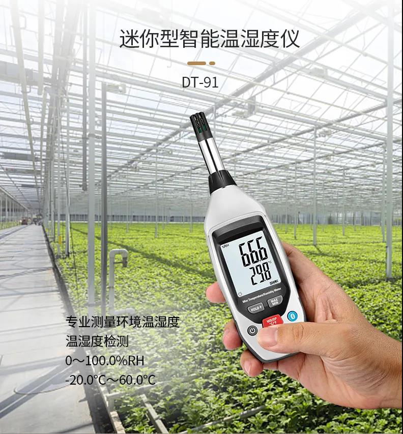 隨著科技的發(fā)展,人們對(duì)溫濕度檢控的要求越來越高,尤其在工業(yè)、農(nóng)業(yè)、氣象、醫(yī)療以及日常生活中。一些綠色食品大棚養(yǎng)殖場(chǎng),植物或牲畜的成長離不開適宜的溫濕度,人們應(yīng)用溫濕度計(jì)(DT-91)或數(shù)字照度計(jì)(DT-92)檢測(cè)環(huán)境溫濕度和光照度,讓蔬菜在適宜的光照度和溫濕度度環(huán)境下更好地進(jìn)行光合作用,使其更快、更健康地成長。另外,一些倉庫、實(shí)驗(yàn)室也需要實(shí)時(shí)知道環(huán)境溫濕度的變化,便于物資的儲(chǔ)存。